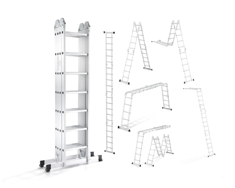 Viacúčelový hliníkový rebrík Garlist GST0407 4×7 je navrhnutý pre profesionálov aj náročných domácich používateľov, ktorí hľadajú jeden rebrík pre všetky situácie. Vďaka premyslenej konštrukcii a trom odolným oceľovým kĺbom ho jednoducho premeníte na oporný rebrík, štafle, lešenie alebo pracovnú plošinu.